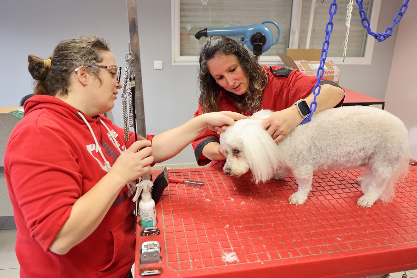 C’est un métier qui allie passion et savoir-faire. Entre esthétique et bien-être. Un an après avoir découvert Fleur de Blé qui fournit galettes et crêpes à l’ESAT de Loudéac où elle travaille, Eve Le Baron a fait le choix d’effectuer son DuoDay dans un salon de toilettage canin, aux côtés d’Alexandra Clero-Lucas, gérante d’un établissement baptisé Au plaisir du chien.