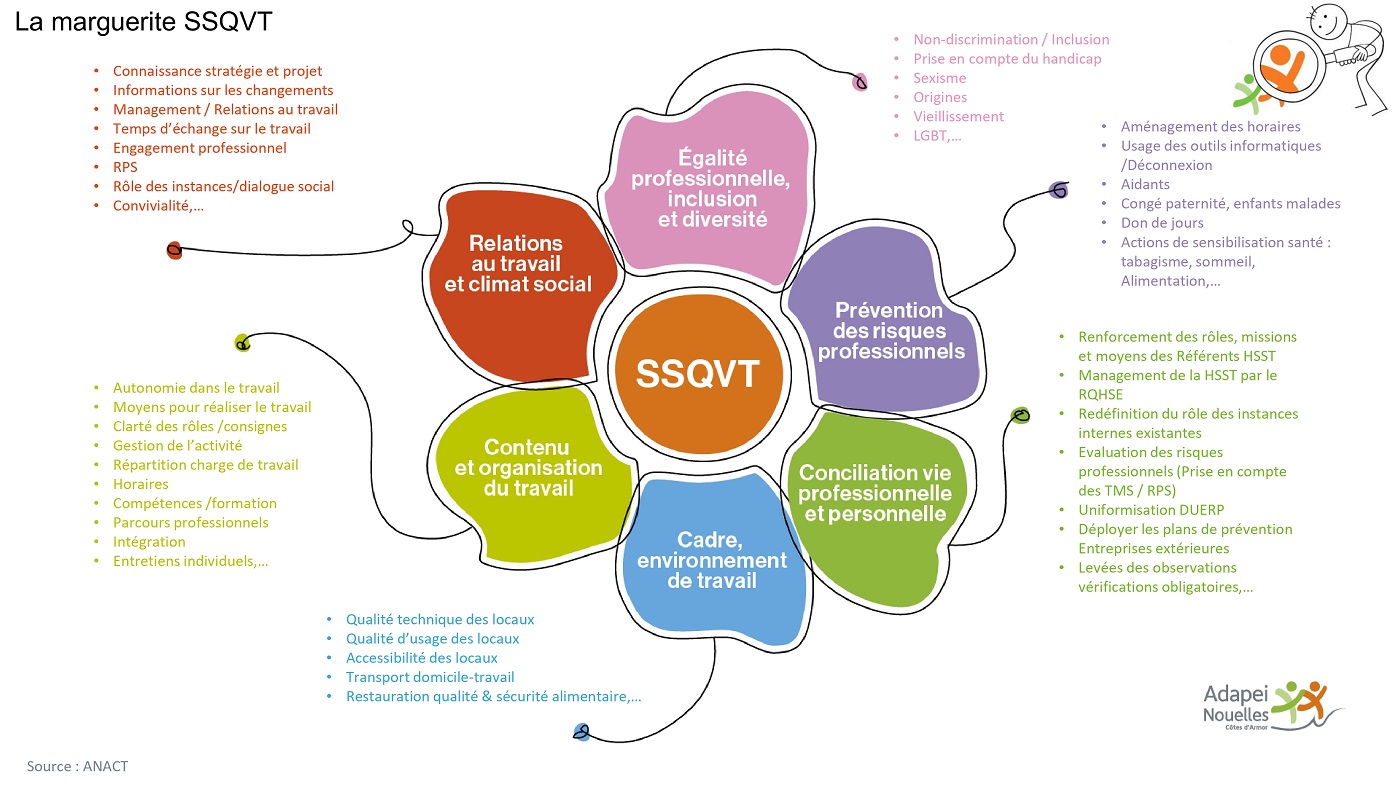 Rappel des principes de la démarche QVCT de l’association, de ses acteurs (directions d’établissements, CSSCT, réseau de préventeurs, représentants de proximité, comité SQVT) et des outils mis en place (baromètre social, marguerite SSVT et management socio-économique).